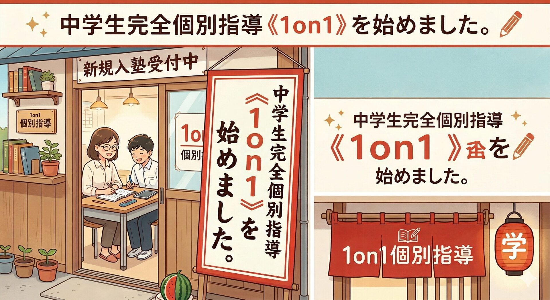 中学生完全個別指導《1on1》を始めました。